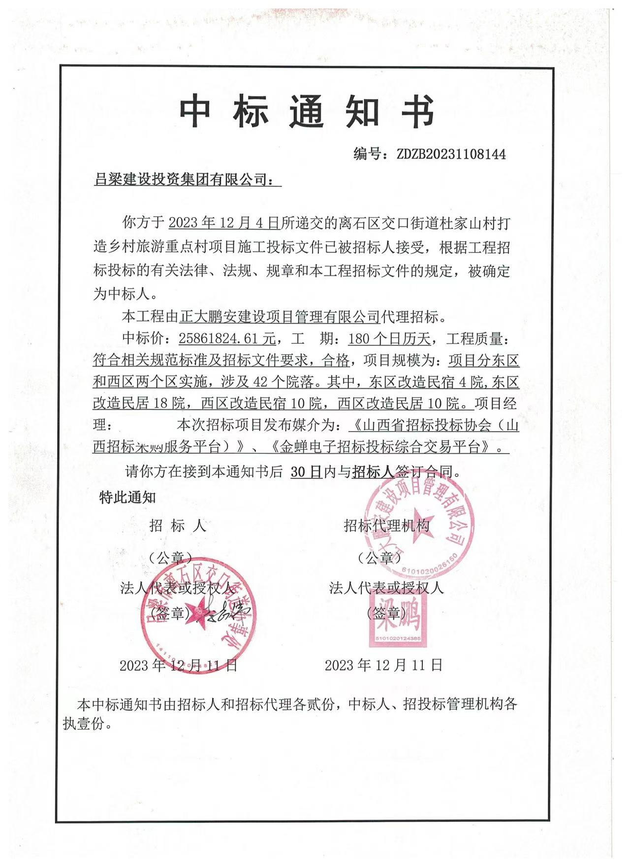 項(xiàng)目名稱:呂梁市離石區(qū)交口街道杜家山村打造鄉(xiāng)村旅游重點(diǎn)村項(xiàng)目施工