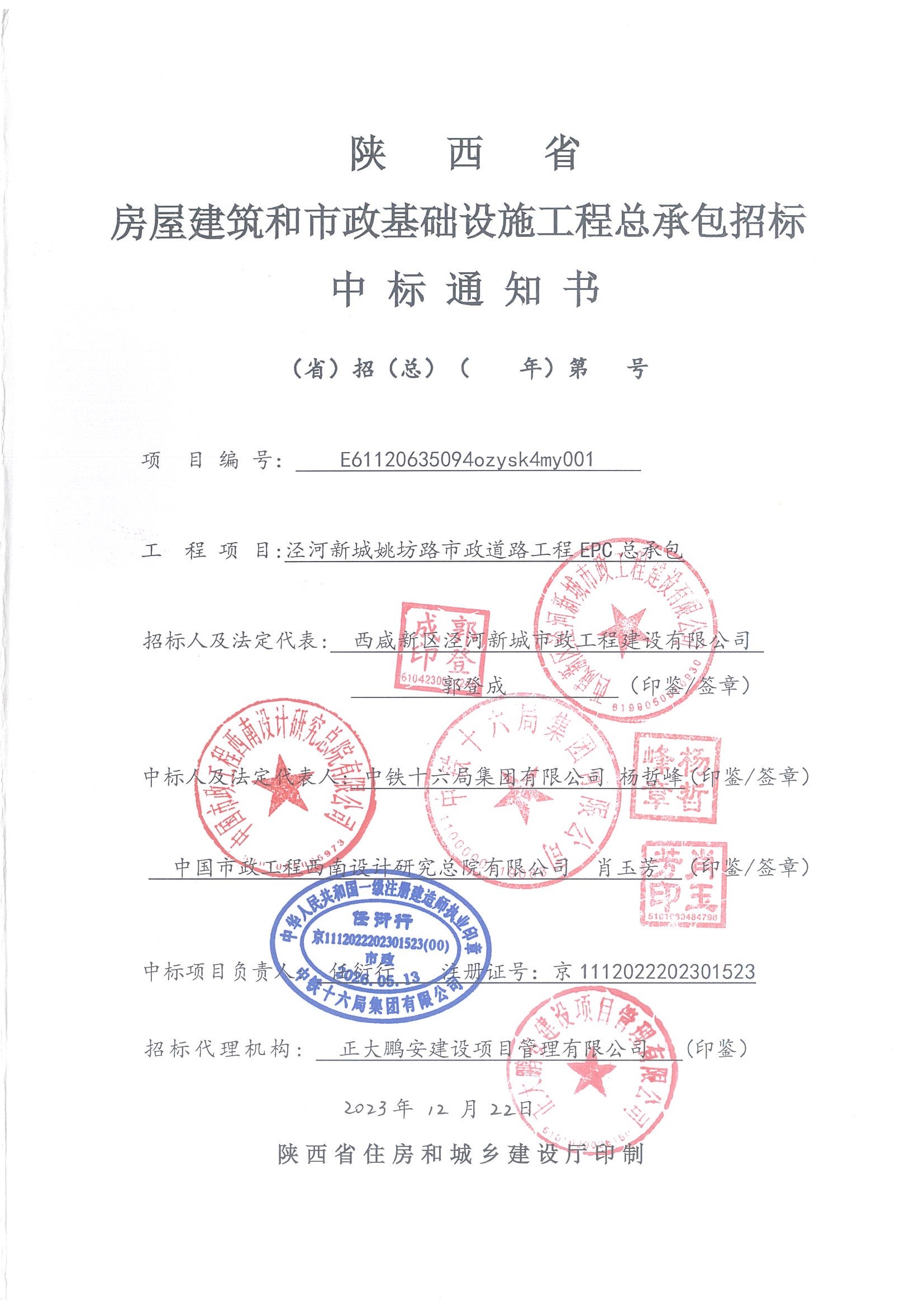 項(xiàng)目名稱:涇河新城姚坊路市政道路工程EPC總承包工程