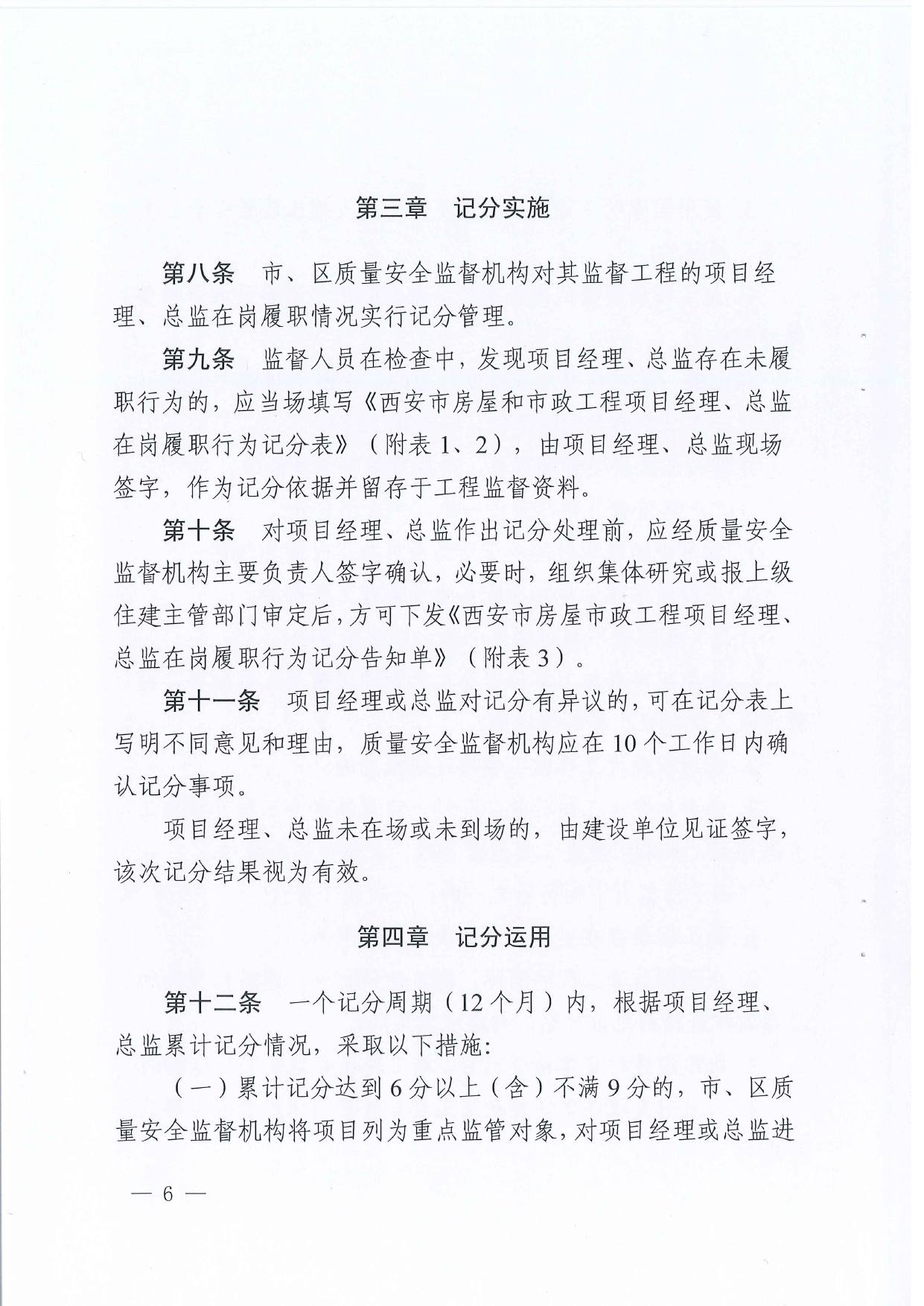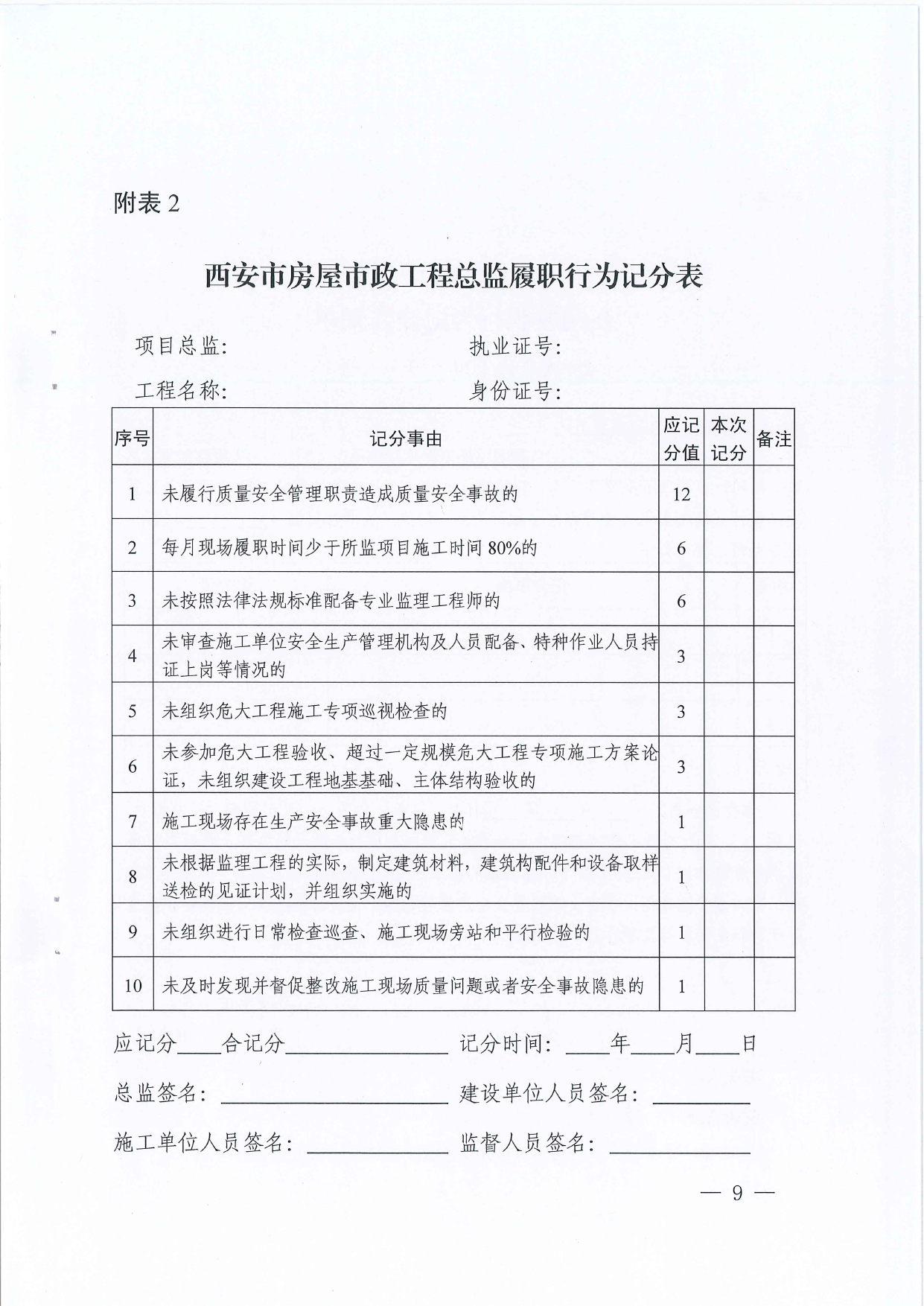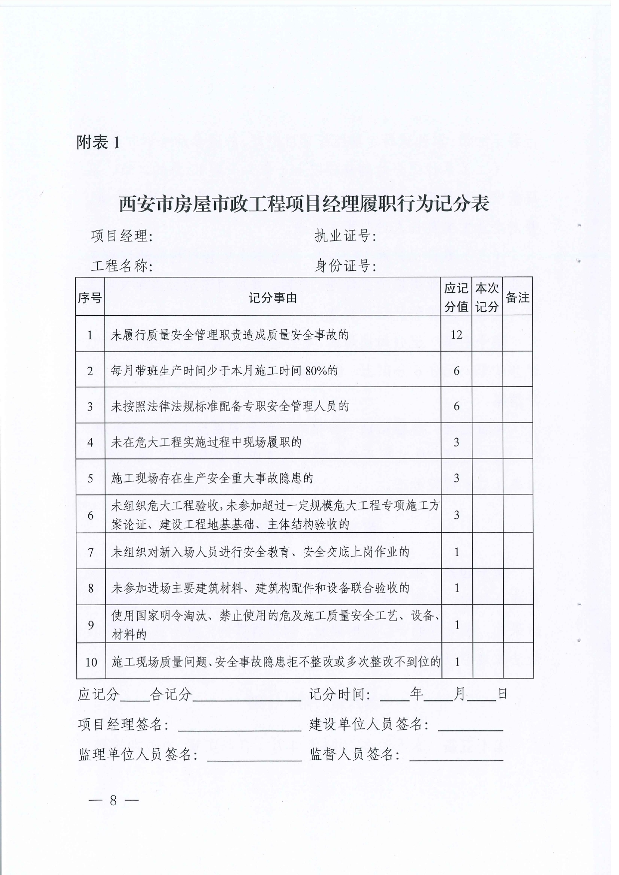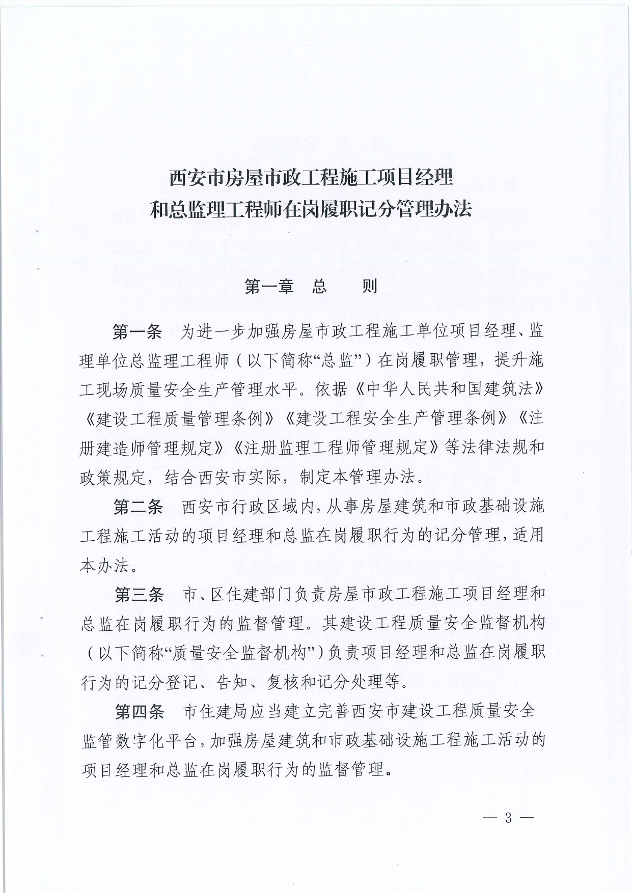 西安市住房和城鄉(xiāng)建設(shè)局關(guān)于印發(fā)《房屋市政工程施工項目經(jīng)理和總監(jiān)理工程師在崗履職記分管理辦法》的通知