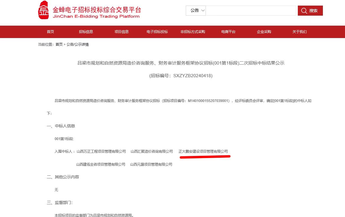 正大鵬安入圍呂梁市規(guī)劃和自然資源局造價(jià)咨詢服務(wù)、財(cái)務(wù)審計(jì)服務(wù)框架協(xié)議招標(biāo)(001第1標(biāo)段)