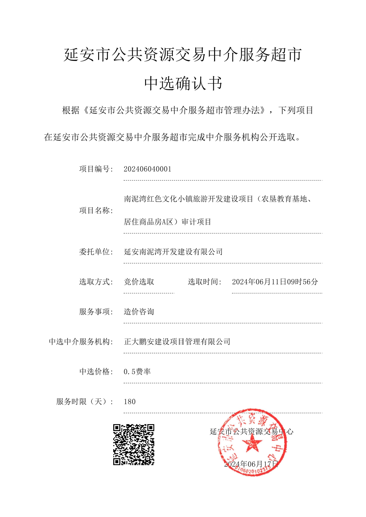 2024年6月,經(jīng)評標委員會綜合評審,招標人確認,正大鵬安建設(shè)項目管理有限公司中標南泥灣紅色文化小鎮(zhèn)旅游開發(fā)建設(shè)項目(農(nóng)墾教育基地、居住商品房A區(qū))審計項目,該項目總投資額7.2億元。