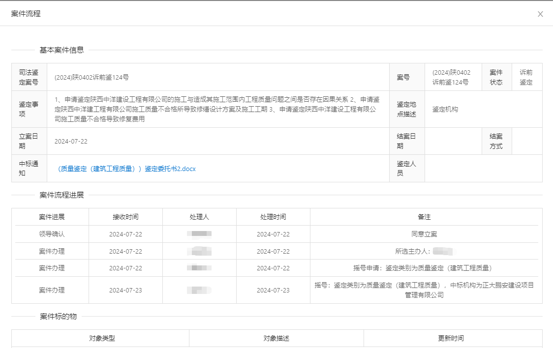 2024年7月22日,經(jīng)咸陽市秦都區(qū)人民法院確認(rèn),正大鵬安建設(shè)項(xiàng)目管理有限公司中標(biāo)“原告咸陽天山創(chuàng)谷房地產(chǎn)開發(fā)有限公司與被告陜西中洋建設(shè)工程有限公司建設(shè)工程施工合同糾紛一案”質(zhì)量司法鑒定項(xiàng)目。