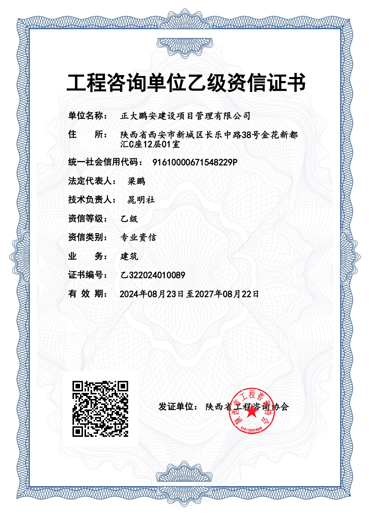 日前,陜西省工程咨詢協(xié)會文件公布了《陜西省2024年工程咨詢單位乙級資信評價結(jié)果的通知》,正大鵬安公司順利通過工程咨詢單位建筑專業(yè)乙級資信評價。
