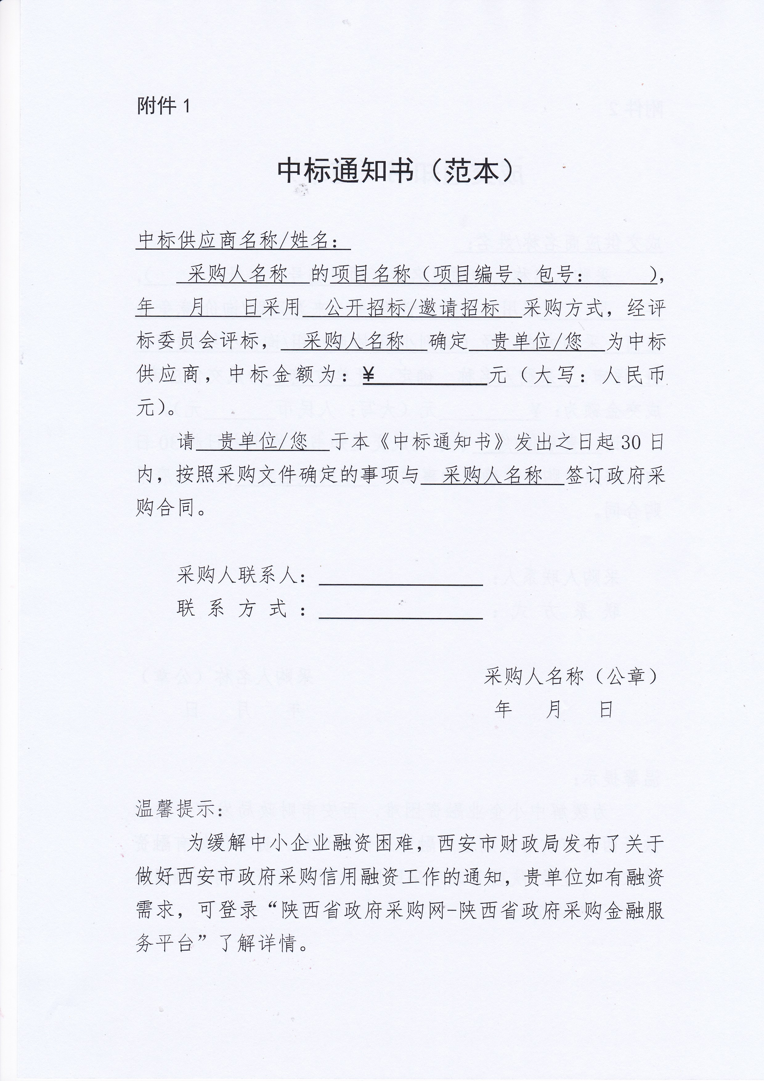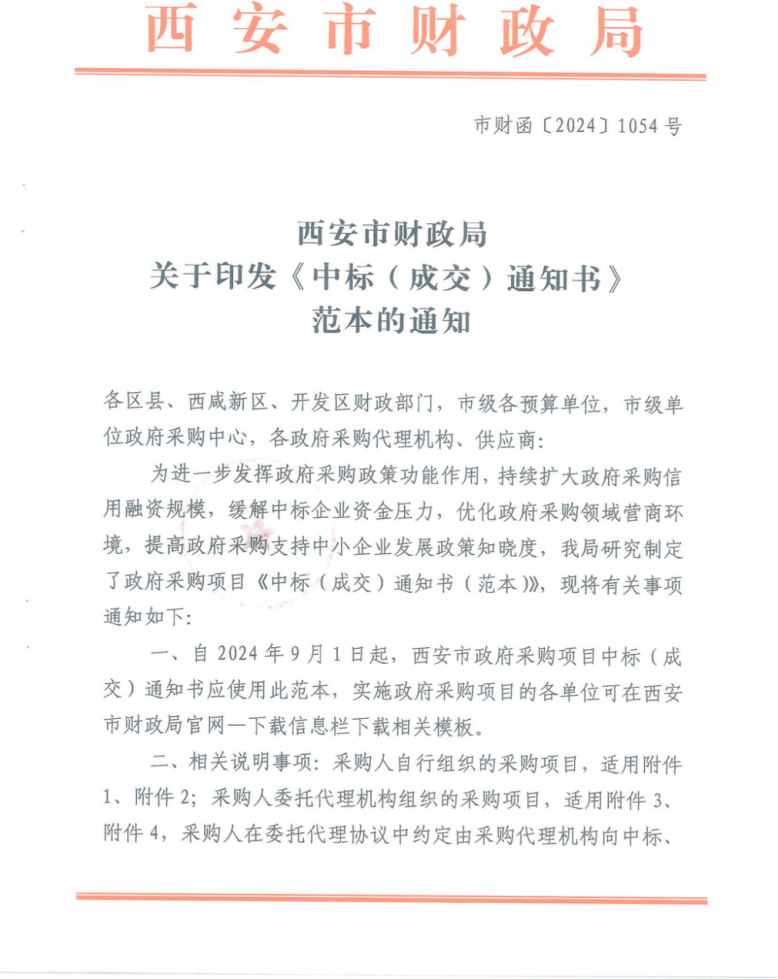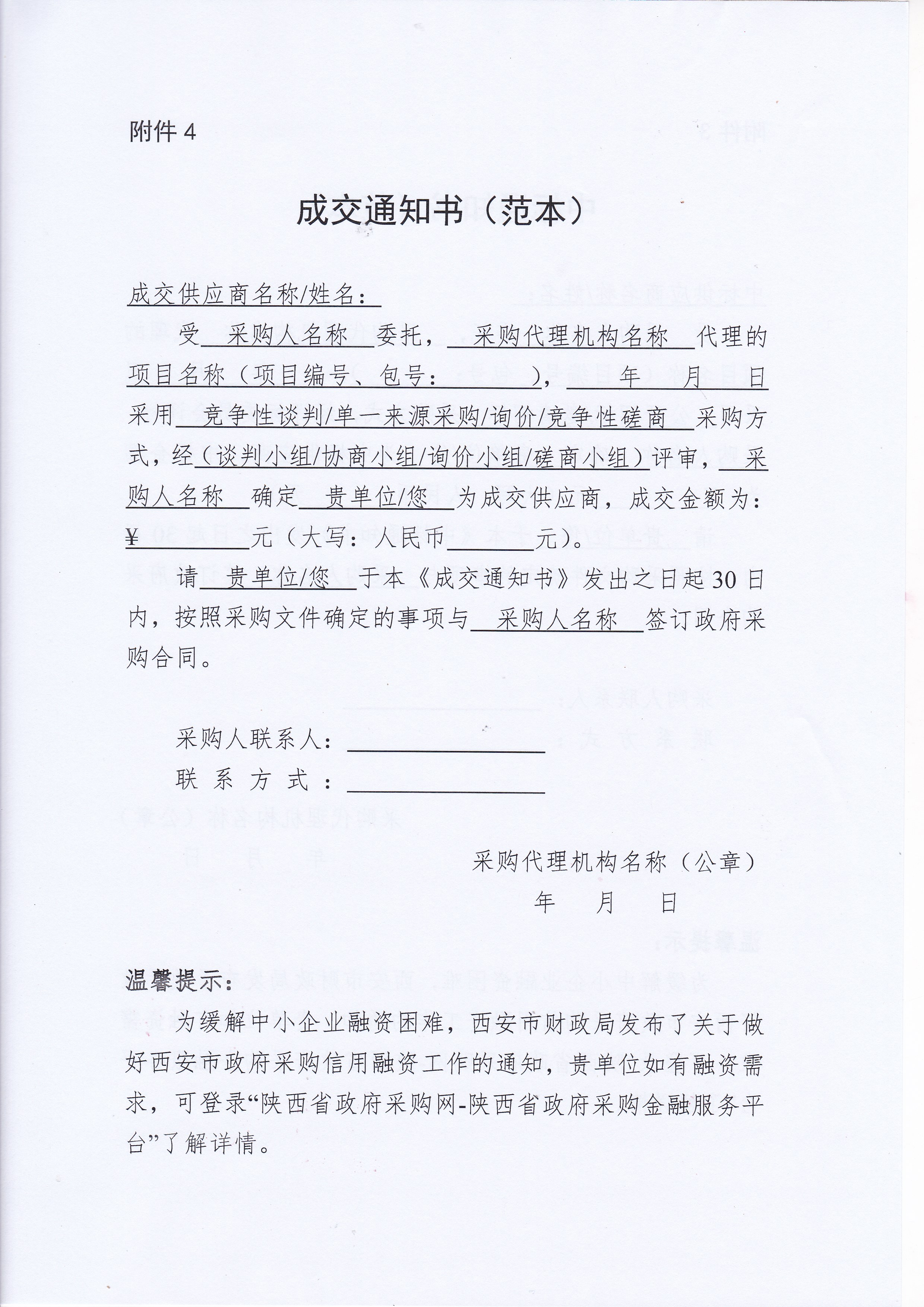 西安市財政局關(guān)于印發(fā)《中標(biāo)(成交)通知書》范本的通知
