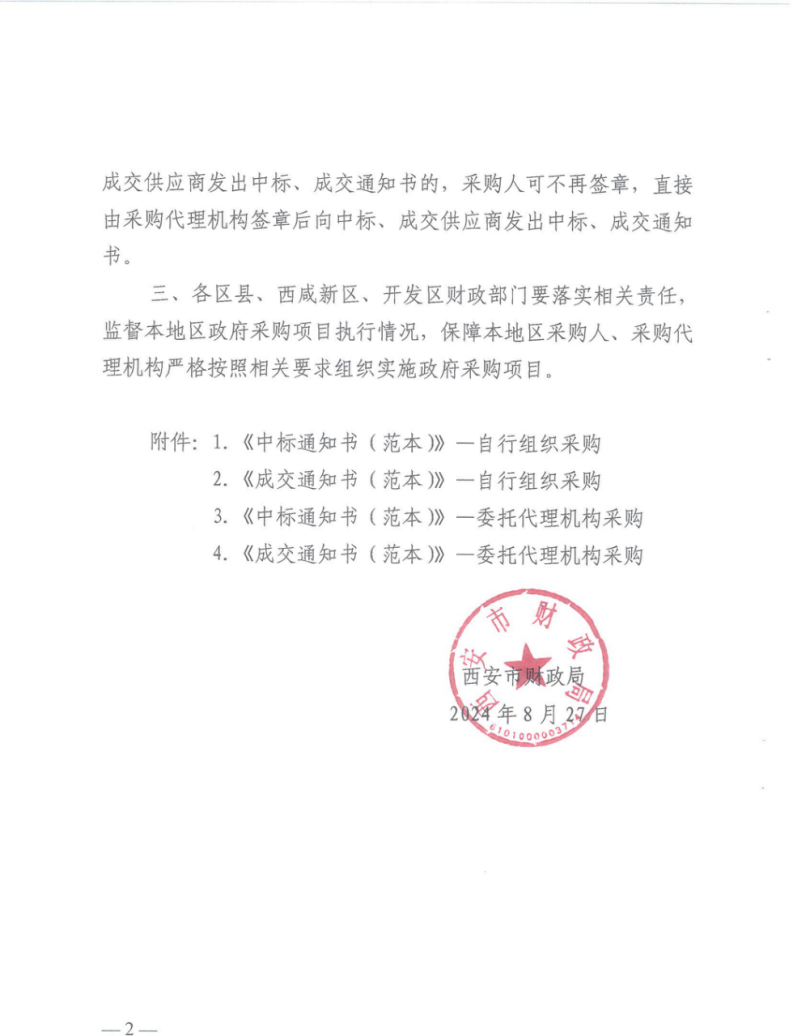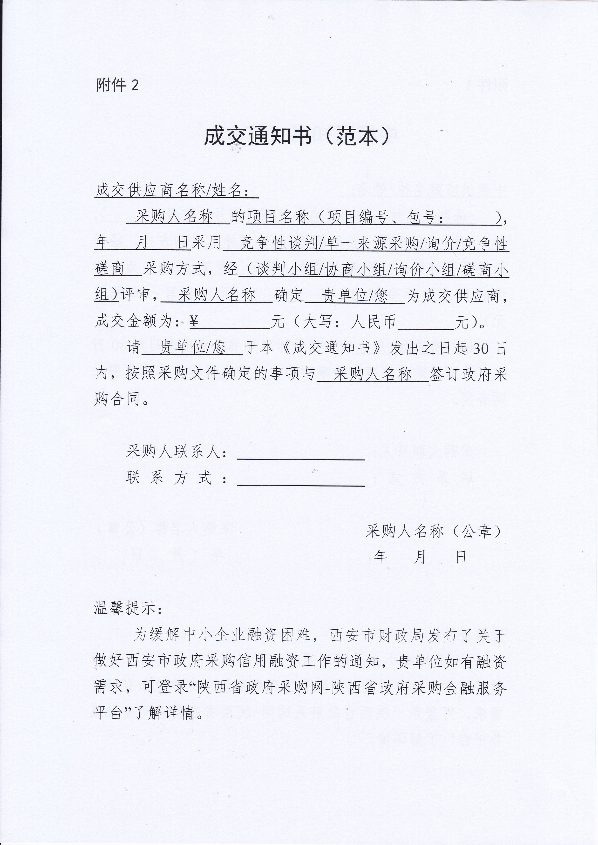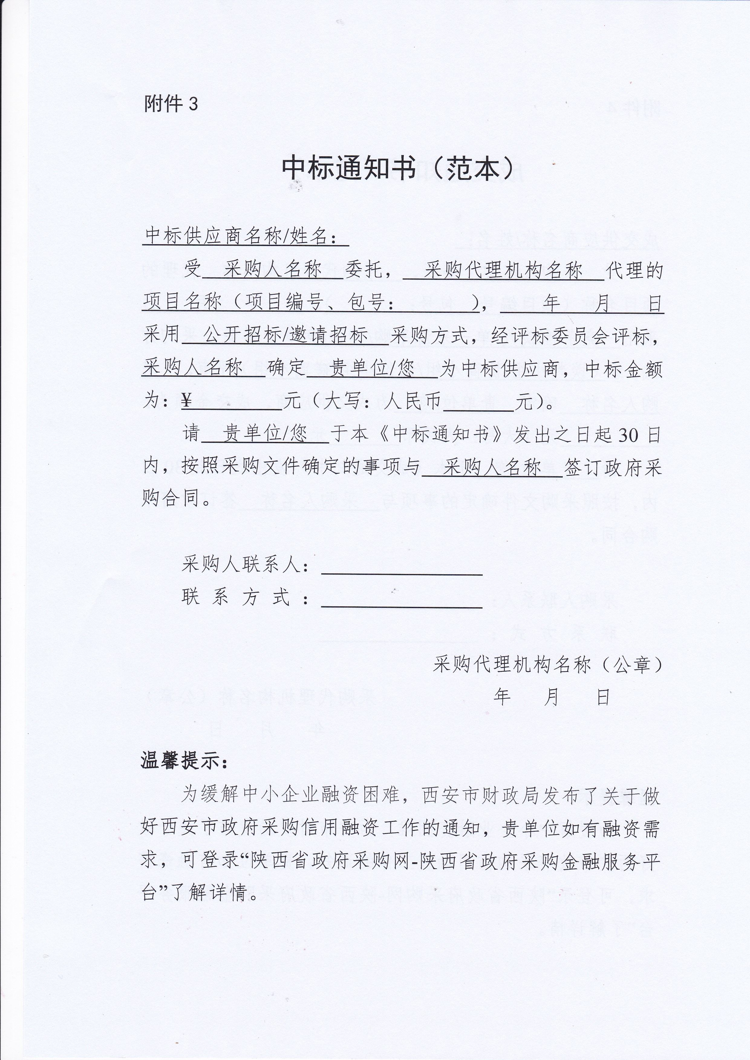 西安市財政局關(guān)于印發(fā)《中標(biāo)(成交)通知書》范本的通知