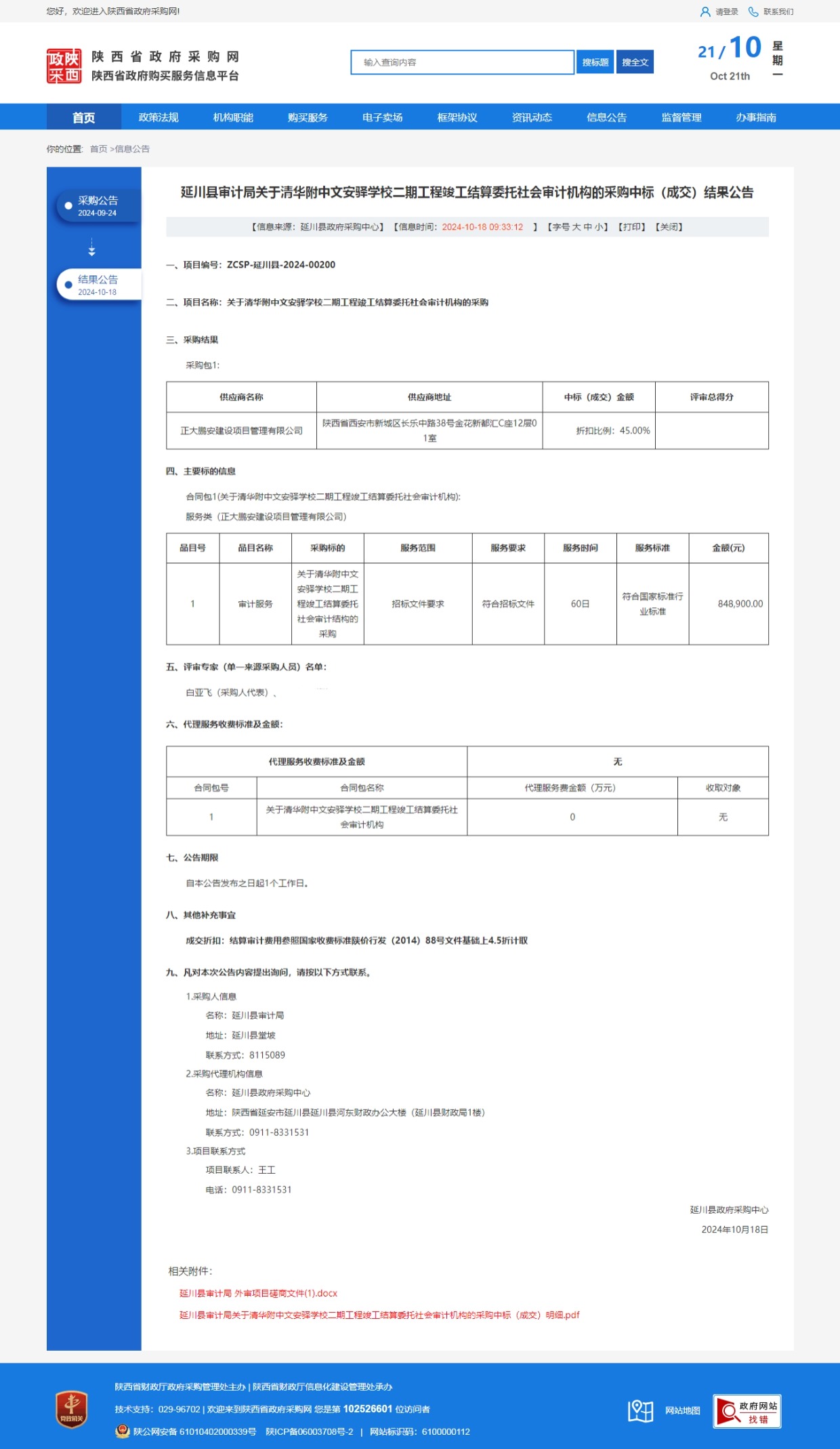 2024年10月10日,經(jīng)評標(biāo)委員會綜合評審,招標(biāo)人確認(rèn),正大鵬安建設(shè)項目管理有限公司中標(biāo)延川縣審計局關(guān)于清華附中文安驛學(xué)校二期工程竣工結(jié)算委托社會審計機(jī)構(gòu)。