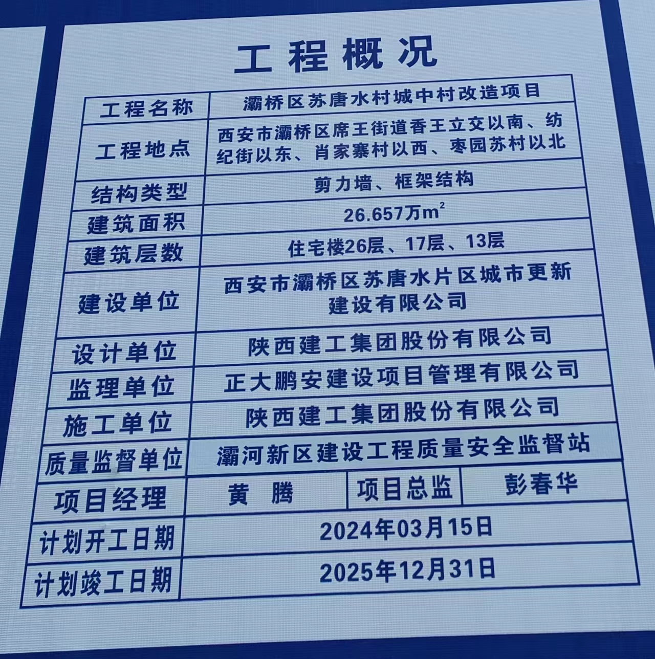 灞橋區(qū)蘇唐水村城中村改造項(xiàng)目監(jiān)理