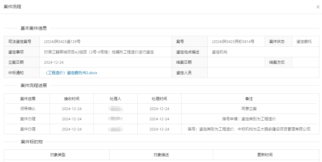 2024年11月26日,經(jīng)涇陽縣人民法院確認(rèn),正大鵬安建設(shè)項(xiàng)目管理有限公司中標(biāo)“原告陜西鑫順達(dá)建筑工程有限公司與被告陜西楓鶴灣實(shí)業(yè)有限公司關(guān)于地輻熱工程施工合同糾紛”造價(jià)司法鑒定項(xiàng)目。