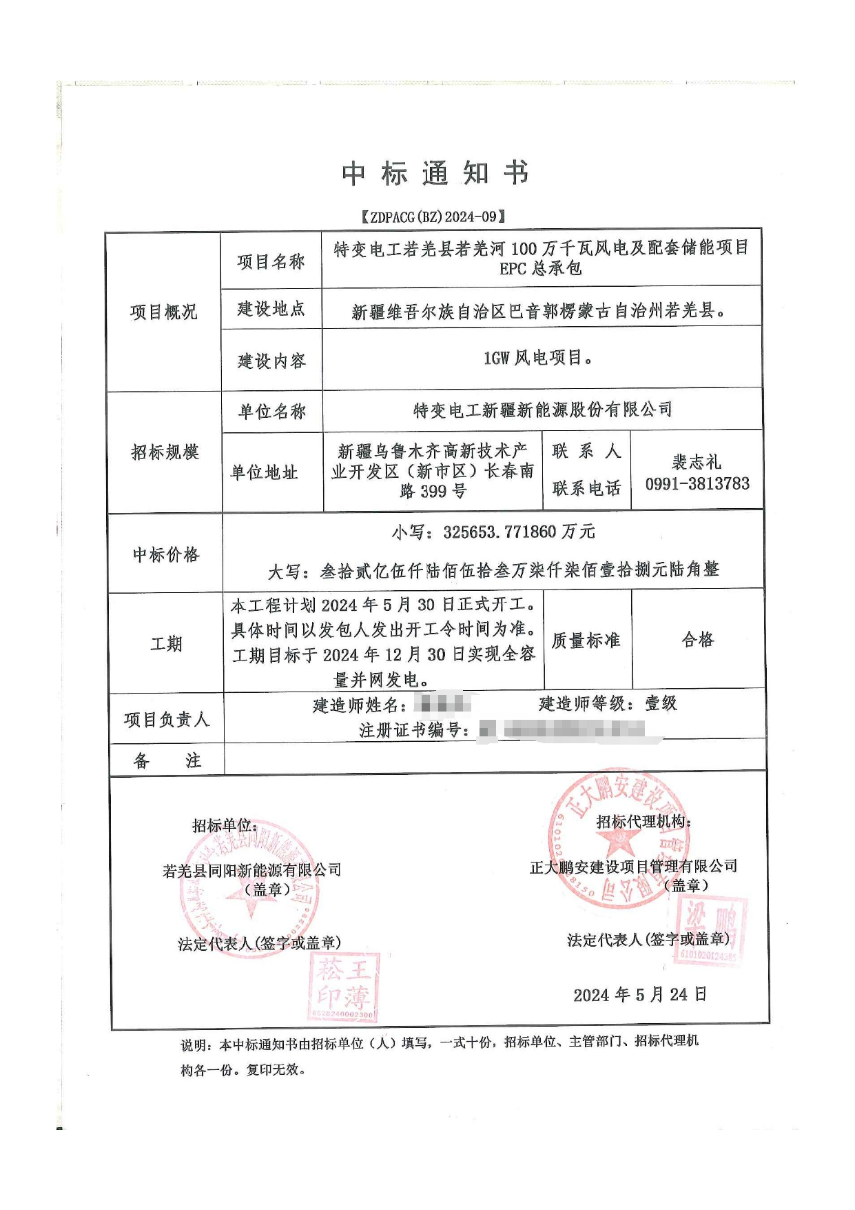 特變電工若羌縣若羌河100萬千瓦風(fēng)電及配套儲(chǔ)能項(xiàng)目EPC總承包
