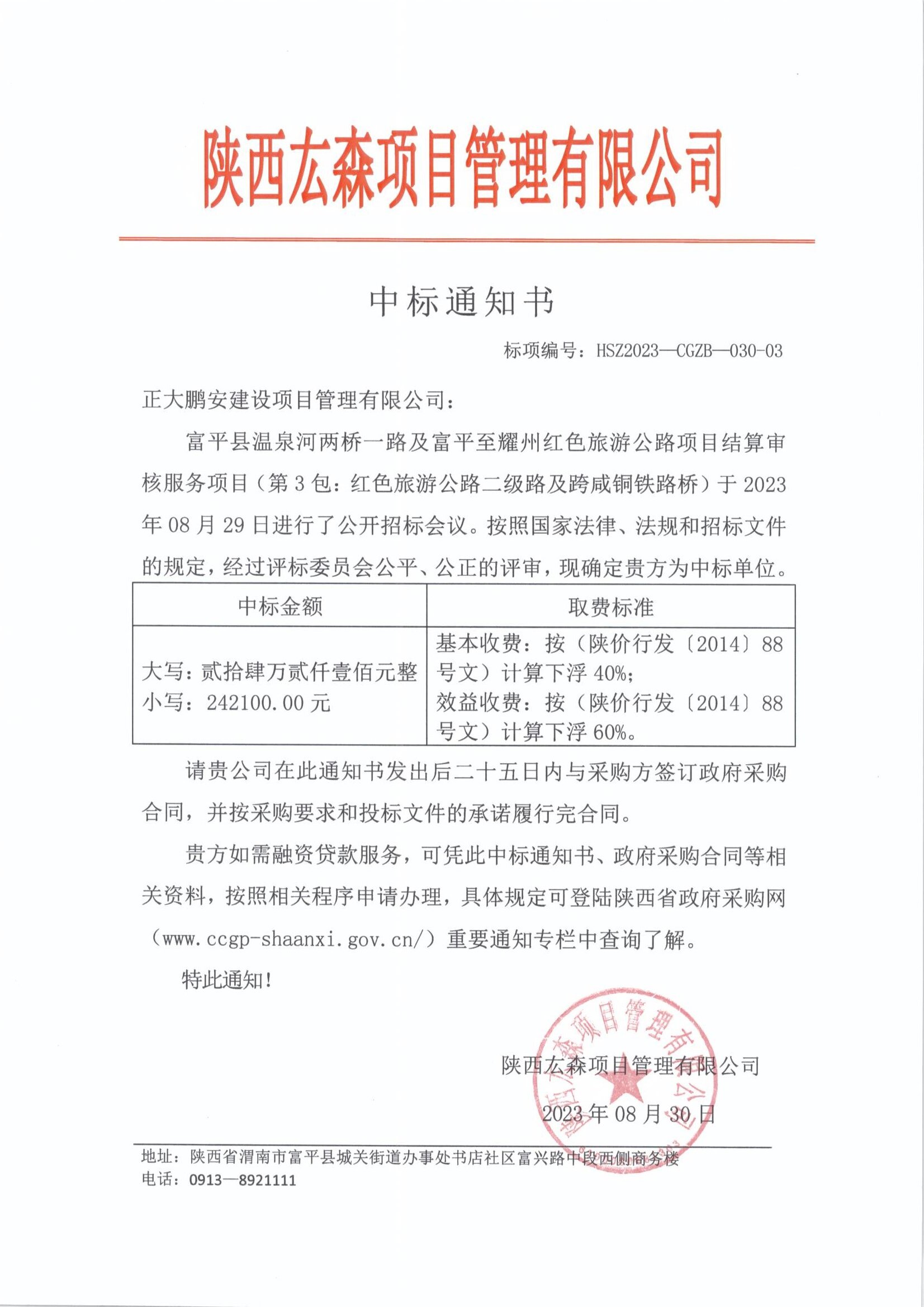 富平縣溫泉河兩橋一路及富平至耀州紅色旅游公路項(xiàng)目結(jié)算審核服務(wù)項(xiàng)目(第3包:紅色旅游公路二級(jí)路及跨咸銅鐵路橋)