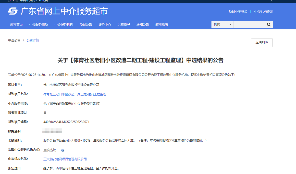 正大鵬安中標(biāo)廣東省佛山市體育社區(qū)老舊小區(qū)改造二期工程建設(shè)工程監(jiān)理