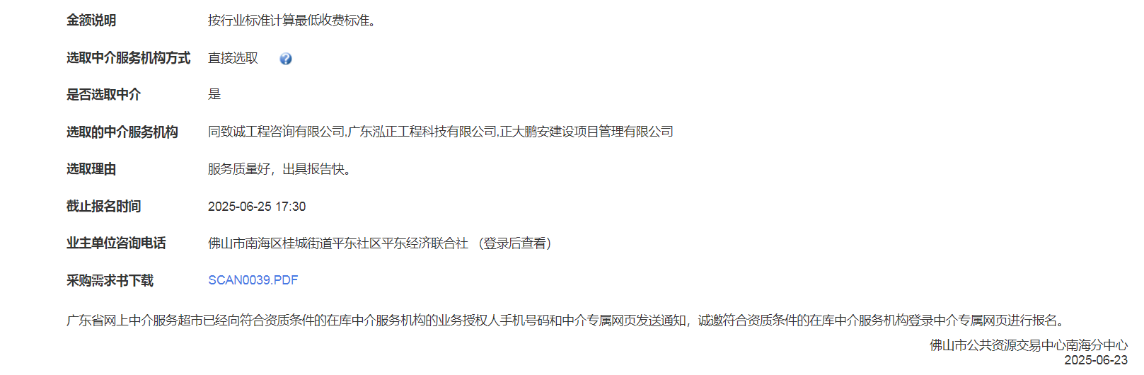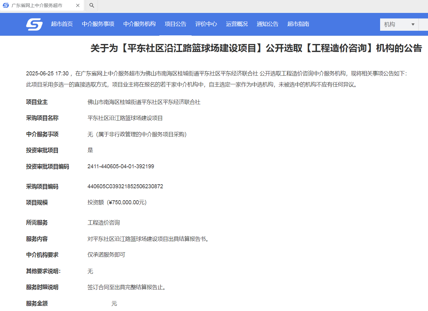 2025年6月25日,經(jīng)評標(biāo)委員會綜合評審,招標(biāo)人確認(rèn),正大鵬安建設(shè)項目管理有限公司中標(biāo)廣東省佛山市平東社區(qū)沿江路籃球場建設(shè)項目工程造價咨詢。