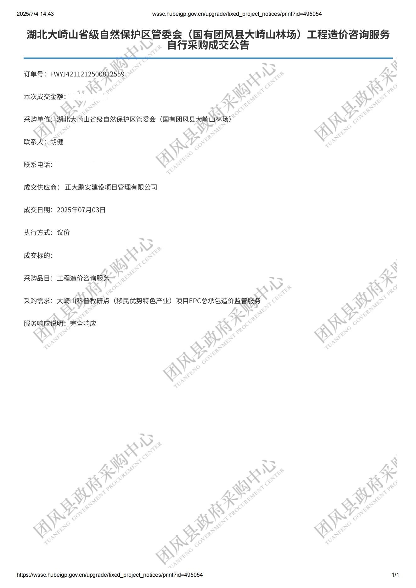 2025年7月3日,經評標委員會綜合評審,招標人確認,正大鵬安中標湖北大崎山省級自然保護區(qū)管委會(國有團風縣大崎山林場)工程造價咨詢服務。