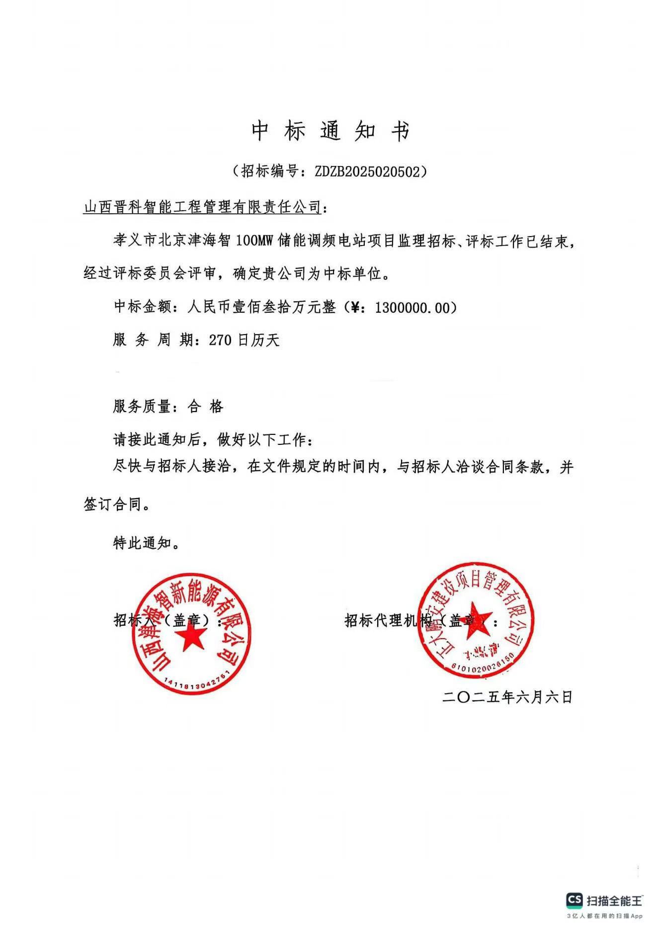 項目名稱:孝義市北京津海智100MW儲能調頻電站項目EPC總承包及監(jiān)理