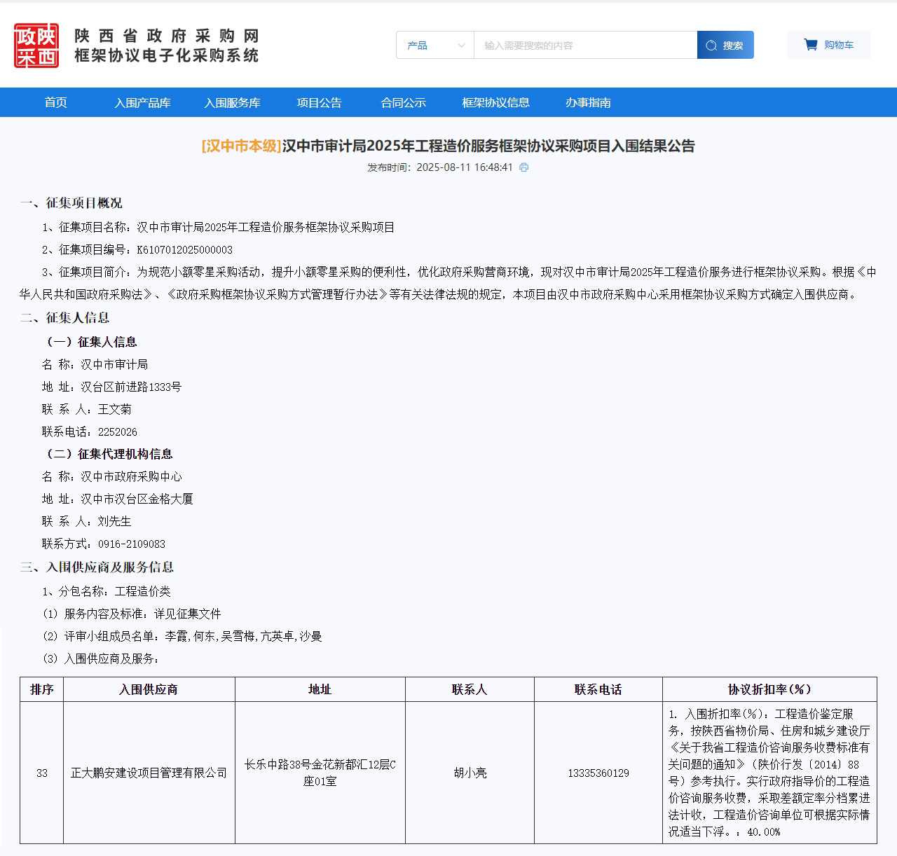 正大鵬安入圍漢中市審計(jì)局2025年工程造價(jià)服務(wù)框架協(xié)議采購項(xiàng)目